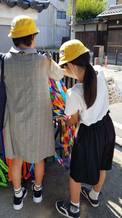 全校児童で折った千羽鶴も持って行き、お寺の入り口に献納しました。