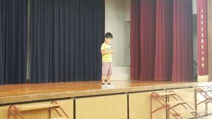 得意のリコーダーで「小さな世界」を演奏し、「笑いあって助け合える学校にするために、困っている人がいたら助けていきたい」と、決意表明しました。