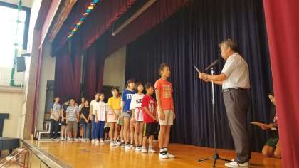 7月30日の水泳記録会に参加した児童の表彰がありました。