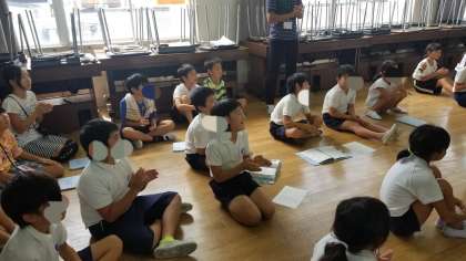 音楽室では5年生がボディパーカッションに取り組んでいました。
