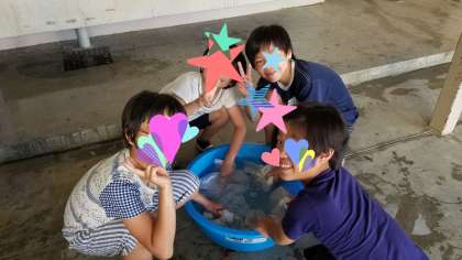 手洗いで体操服を洗います。