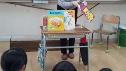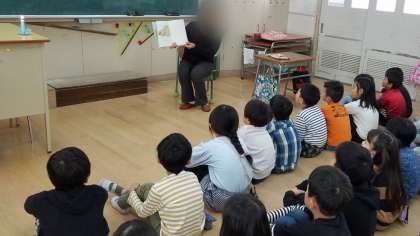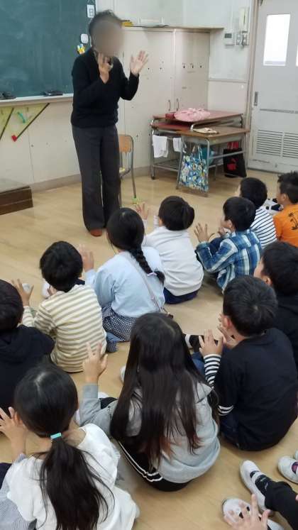 読み聞かせや朗読、手遊びなどをして頂き、子どもたちは驚いたり笑ったり、時には声を出したりして楽しんでいました。