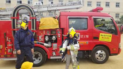 消防車体験や煙体験をしたり心肺蘇生法、傷病者の搬送方法を教えていただいたりしました。