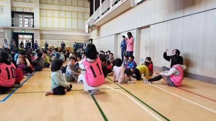 今年最後の児童集会は、「なんていったん?」でした。集会委員が一斉に言った言葉は何かを三択から考えて答えます。