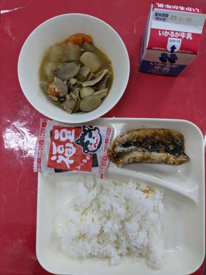 いわしの生姜醤油かけ、ふくめに、入り大豆、ご飯、牛乳