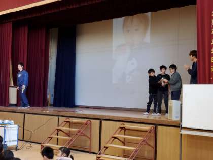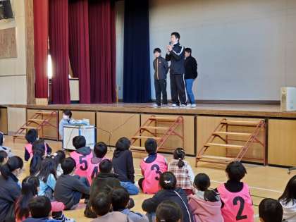 2月6日の児童集会は今年度最後のゲーム集会、毎年恒例の「先生クイズ」でした。