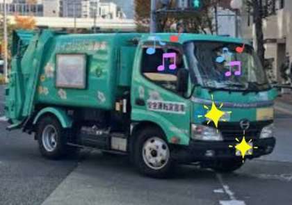 ステイホーム週間に、パッカー車がどんな曲を流しているか? パッカー車の色はどんな色か?