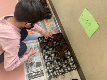 1時間目は、理科の学習でヘチマとヒョウタンの種を観察し、種うえをしました。虫めがねを使ってそれぞれの種のちがいや特徴(とくちょう)を発見することもできました。