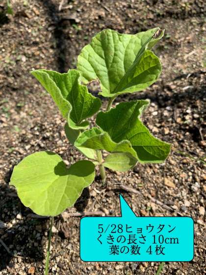 ヒョウタンは、葉の数、くきの長さともに変わらずでした。