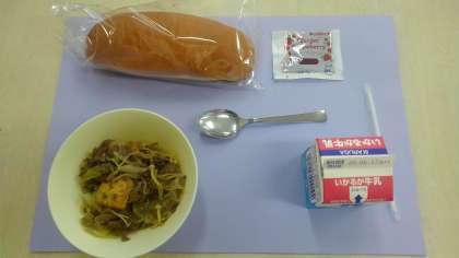 すきやきに、コッペパン、牛乳