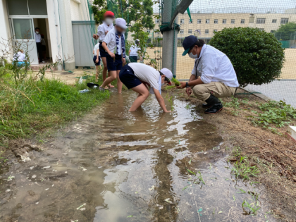 今年度もJA大阪の方に教えていただき、1人ずつ苗を水田に植えかえました。
