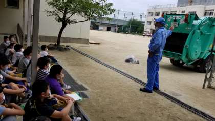 社会科「住みよいくらしとごみ」の学習のまとめとして、パッカー車体験学習をしました。
