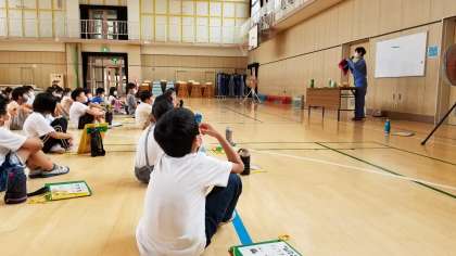 次に、3R(リデュース、リユース、リサイクル)について教えていただいたり、提示されたごみが、資源ごみ、ふううごみ、古紙・衣類、容器包装プラスチックごみにのどれになるかを考えたりしました。