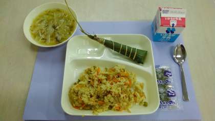 きんぴらちらし、すましじる、ちまき、牛乳
