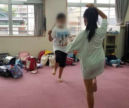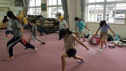 ダンスリーダー中心に、放課後にエイサーの練習で頑張る4年組。