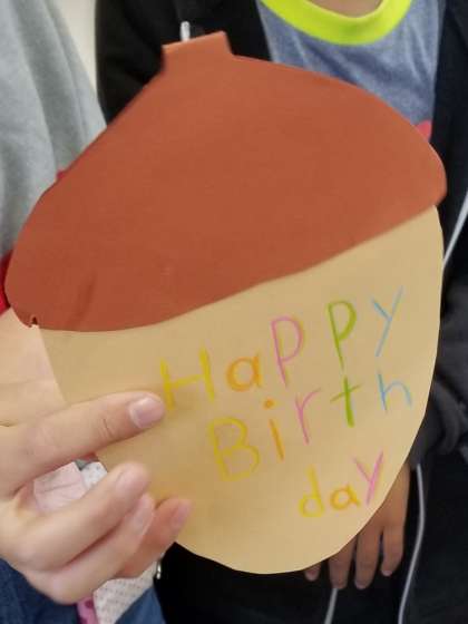 お誕生日係は、お誕生日カードを作り、友達にプレゼントしてくれます。