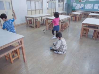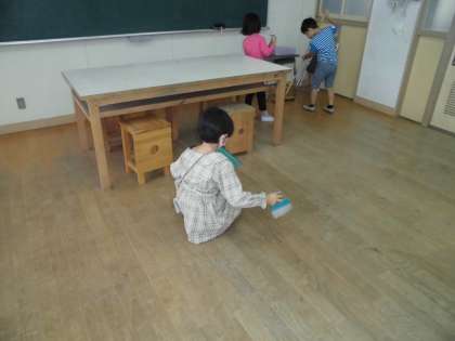 2年生が図工室の掃除の当番になっています。ほうきを上手に使い、ちりとりで丁寧にごみを取っています。図工室がすみずみまで綺麗になりました!