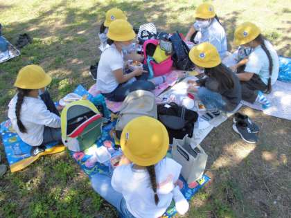 3年生は、大阪城公園へ遠足に行きました。遊具広場では、ジャングルジムやすべり台などで楽しく遊びました。オリエンテーリングは、各班でポイントを回り、クイズに答えてゴールを目指しました。クイズは難しい問題もありましたが、各班で知恵を出し合って答えていました。
