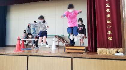 昨年度より、バージョンアップした 「SASUKE」に、子どもたちは大歓声。楽しみながら体力アップにつながる「SASUKE」。
