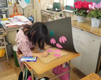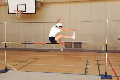 体育は、高跳びをしています。グループのみんなでアドバイスをしあい、自己最高記録に挑戦しています。