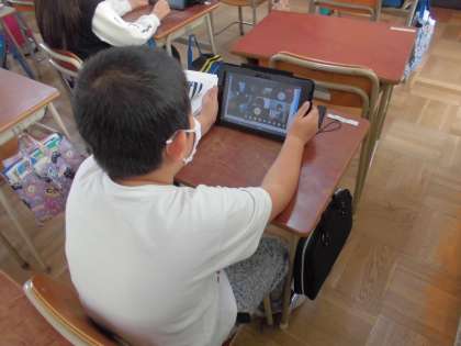 6年生は、11月28日(土)の土曜授業の1・2時間目に各家庭でオンライン学習をしました。家庭で通信環境及びパソコンなどの機器が準備できない場合は通常通り登校し、6年の教室で学校用のタブレットを使用してオンライン学習に参加しました。子どもたちは、パソコンやタブレットを使って、楽しく学習することができました。