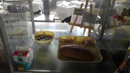 けいにくのからあげ、ちゅうかみそスープ、もやしとコーンのあまずあえ、こくとうパン、牛乳