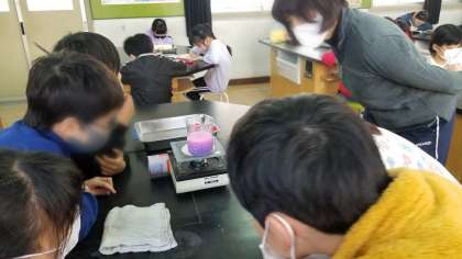 水は温めると温まった部分が上へ上がることを繰り返し、全体が温まっていくことがわかりました。