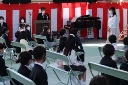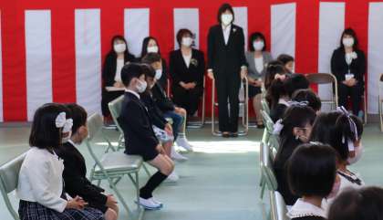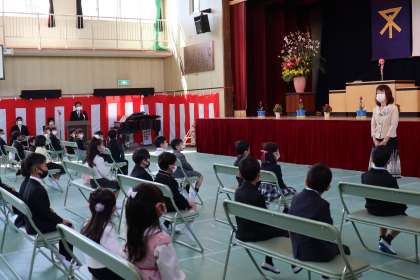 晴天の中、59名の新一年生を元気に迎えることができました。コロナ禍でありますが、楽しく学び、遊んでほしいと願っています。