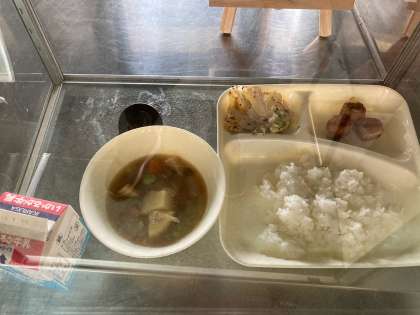 まぐろのオーロラに、ふくめに、キャベツのあかじそあえ、ごはん、牛乳
