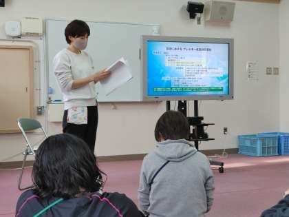 安全な学校給食を運営するため、教職員対象のアレルギー対応研修を開催しました。