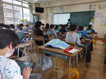 社会科では都道府県の学習をソフトを使ってクイズ形式で楽しみました。