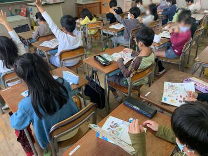3年生の外国語では、アメリカ、中国、ケニア、ドイツなど…いろいろな国のあいさつを学習しています。