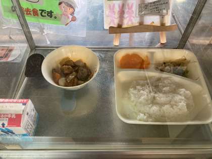はっぼうさい、チンゲンサイともやしのしょうがあえ、みかんのかんづめ、ごはん、牛乳
