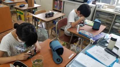 5年組 メダカの卵の観察
