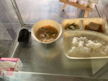 けいにくのおろしじょうゆかけ、みそしる、やさいいため、ごはん、牛乳