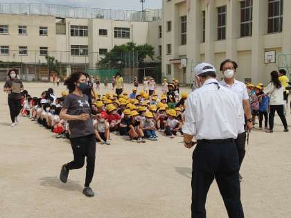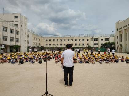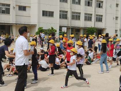 「家庭科室より出火しました。放送をよく聞いて、安全に避難しましょう」