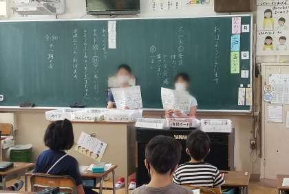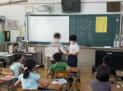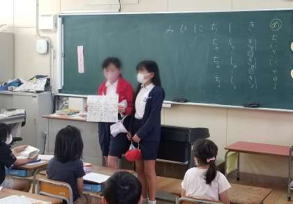 6月1日(火)の朝の会、代表委員が各クラスに、北田辺フェスティバル、ドッジビー大会のルール説明に行きました。