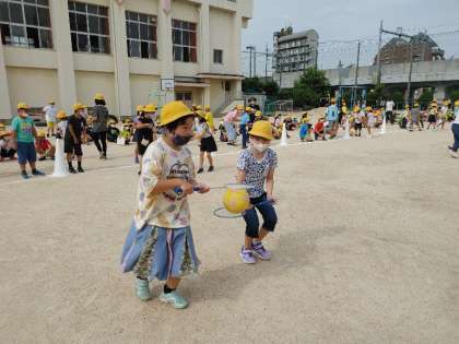 高学年と低学年がペアになって、折り返しリレーを楽しみました。