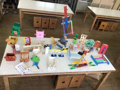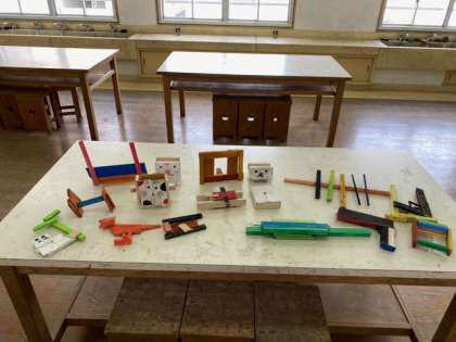のこぎりや金づちなどの道具を使って、木工工作に挑戦しました。