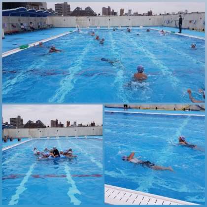 プール納めでは、ふれあい班対抗での宝探し、リレー、浮島運びをしました。