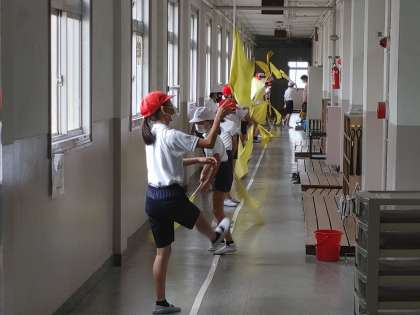 廊下や教室内では、いつもの様にフラッグを振る事が出来なくて、練習するのに苦労していました。