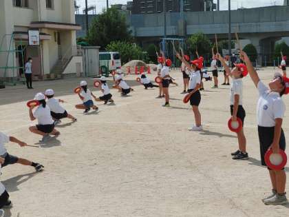 3年生は輪のバトンを4年生はパーランクを持っての演技です。