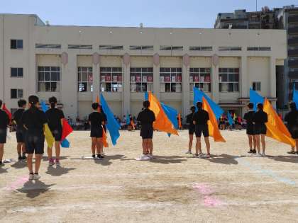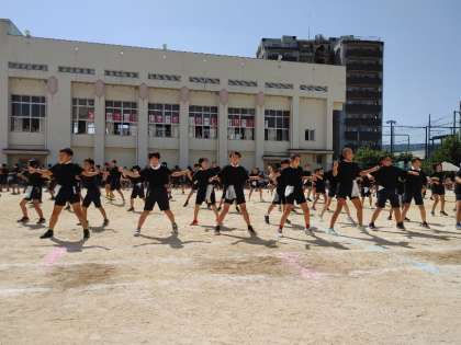 運動会の最後を飾るのは、5、6年生による団体演技「紡ぎ」です。
