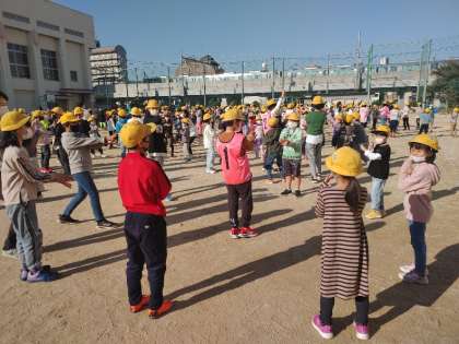 ふれあい班に分かれて、鬼とジャンケンして、勝ったらヒーローに変身です。
