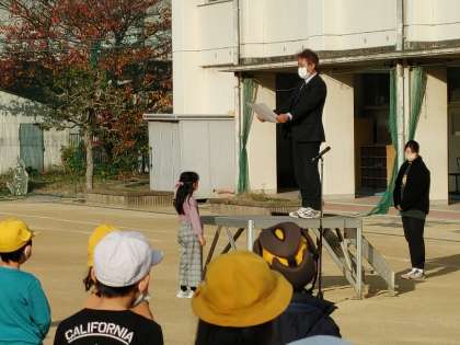 月曜日の朝は、運動場での児童朝会でスタートします。