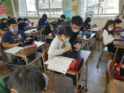 使い慣れないタブレットのキーボードに集中して取り組みます。
