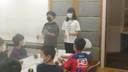 小雨のため、集会室での実施です。