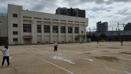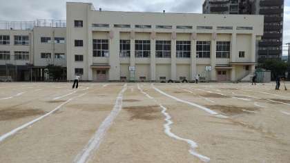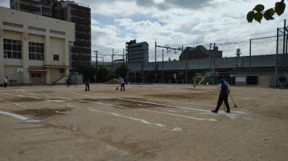 放課後、児童の下校後の運動場で職員作業として、「にがりまき」がありました。