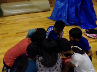 2日目の夜は、室内オリンピックです。だれを選手にするのか、話し合っています。