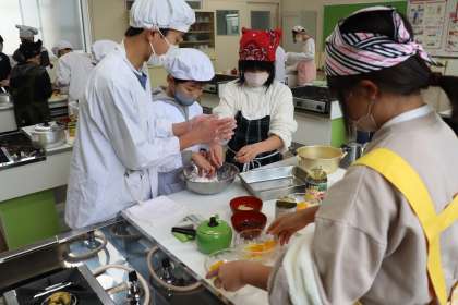 家庭科室で5年1組が調理実習をしました。